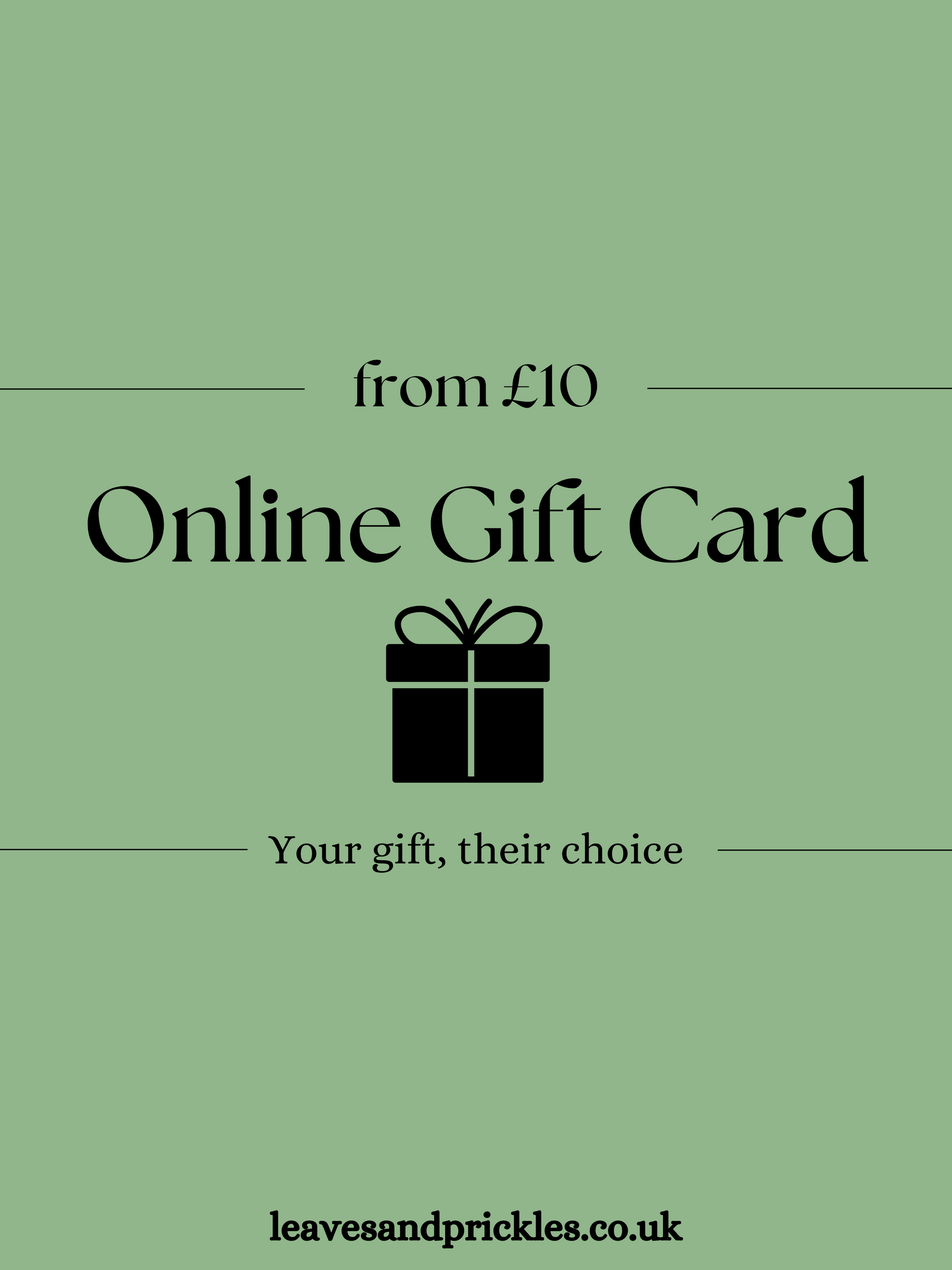 Shopping for someone else but not sure they would like? Let them pick with a leaves and prickles online Gift Card.